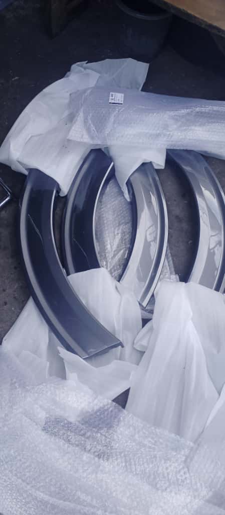 Durable exterior wheel arch trims designed to protect body panels and enhance vehicle appearance.